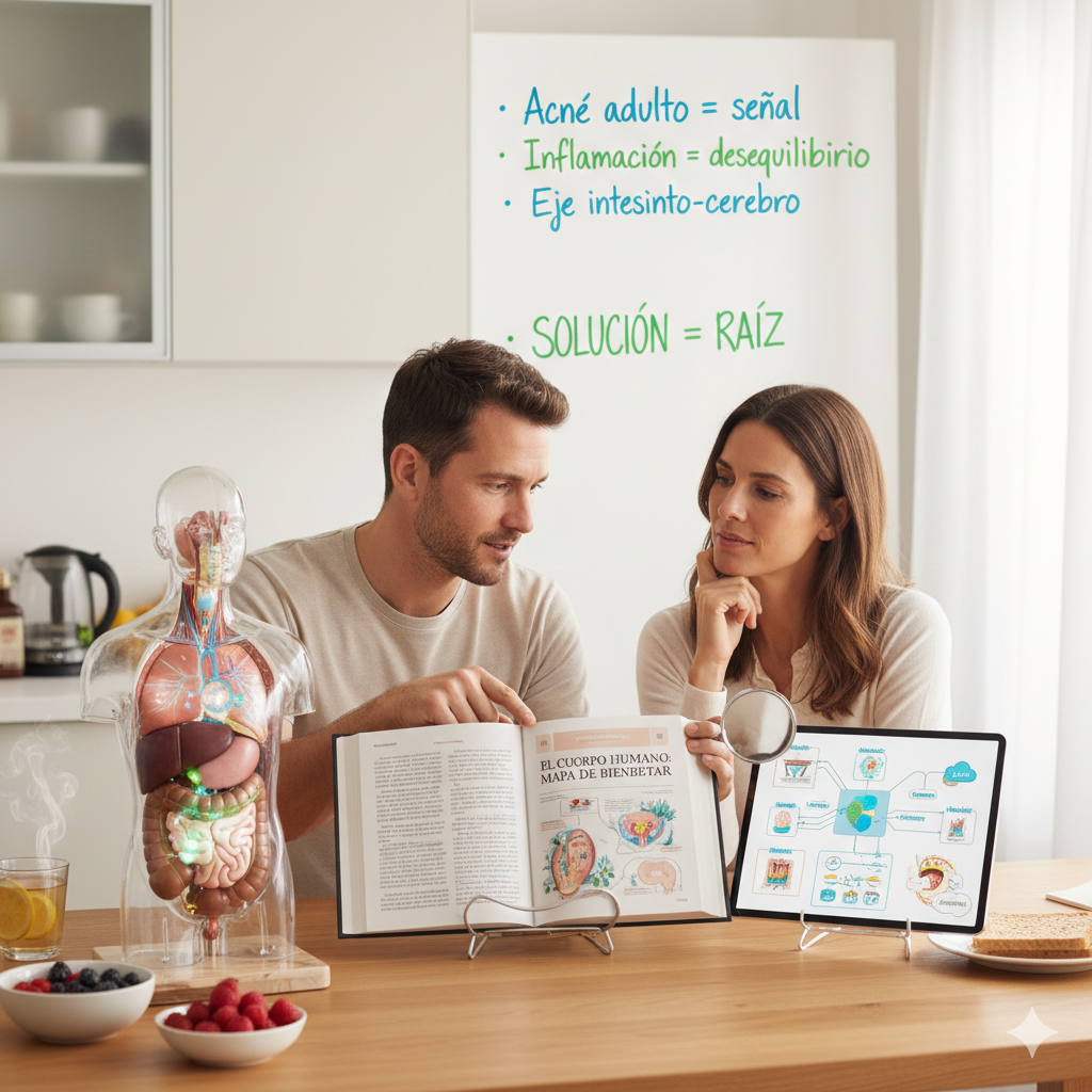 Entenderás qué puede estar ocurriendo en tu cuerpo, especialmente con señales como acné adulto, inflamación, cansancio o problemas digestivos, sin diagnósticos médicos.
